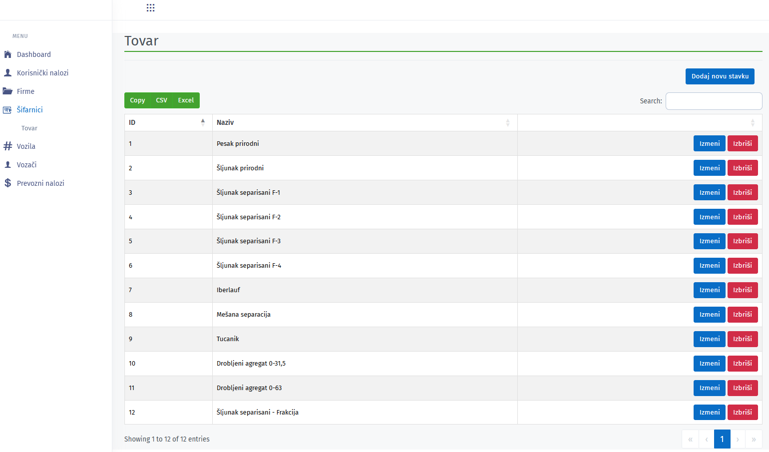 Web aplikacija ze upravljanje klijentima, vozilima, vozačima, nalozima i za generisanje izveštaja.